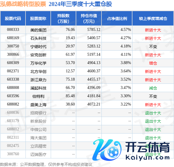 泓德策略转型股票为股票型基金,把柄最新一期基金季报深远,该基金钞票成就:股票占净值比87.3%,债券占净值比1.76%,现款占净值比4.69%。基金十大重仓股如下: