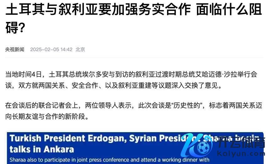 比较之下,叙利亚模式的变化关于土耳其来说可算是一个好契机。一直以来,土耳其都在维持叙利亚的反对派武装,提供了军事、政事和政策维持。不错说,莫得土耳其的赞理,叙利亚的反对派很难有今天的地方。2月4日,叙利亚过渡政府的提醒东谈主还切身跑到土耳其见了埃尔多安,两东谈主达成了进一步互助的共鸣。土耳其甚而还应允,会帮叙利亚争取被以色列法例的河山。