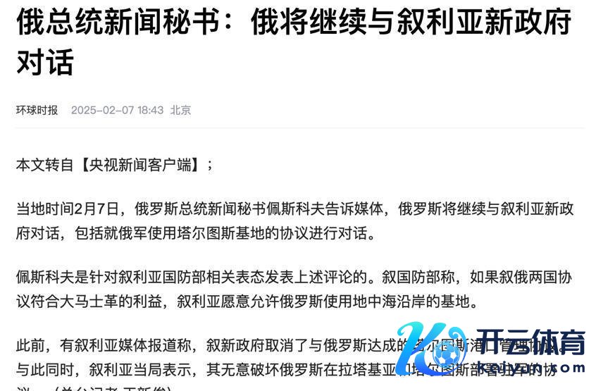 不外,俄罗斯也不是蚀本的小白兔。当今叙利亚模式变了,俄罗斯反倒不错抽身,专心处理俄乌突破的问题。换句话说,叙利亚的“烂摊子”可能让俄罗斯少了点中东的阻滞。即便如斯,俄罗斯的队列还没皆备撤出叙利亚,而是链接防御在那里。2月7日,俄罗斯总统新闻文书佩斯科夫还公开暗示,他们正在跟叙利亚的过渡政府考虑,但愿链接使用在叙利亚地中海沿岸的军事基地。